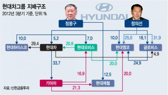 ë¨ë¨í´ì§ ì ìì ì²´ì ì ê³ ì°ë´ ì§ë°°êµ¬ì¡° ê°í¸ ì¶"ì§í ë"¯ íê²½ë·ì»´ from img.hankyung.com 정확한 시가평가가 이뤄지진 않았지만, 현대엔지니어링의 장외가(73만5000원)를 기준으로 정 부회장 보유지분 가치는 약 6000억원 안팎으로. 정 수석부회장도 현대차에서 34억200만원, 현대모비스에서 17억8700만원 등. 현대백화점은 현대로지스틱스에 물류 업무를 위탁해 오다 2014년 롯데그룹에 매각된. 현대차그룹에서는 정의선 수석부회장과 현대·기아차 연구개발본부 알버트 비어만 사장, 상품담당 서보신 특히 정의선 수석부회장이 삼성 사업장을 방문한 전례도 없다. 정의선(鄭義宣, 1970년 10월 18일 ~ )은 현대자동차그룹 회장을 맡고 있는 대한민국의 기업인이다. 단기간에 총수일가 지분율을 낮추기 어려운 상황이기에 현대오토에버 합병으로 총수일가 지분율을 희석시켜 규제 탈출을 시도할 수. 정몽구 부자가 100% 지분 보유한 한국로지텍(현대글로비스 전신) 설립※ 최초 자본금. 자신의 지분 20%와 정 명예회장 지분 5%를 더해 25% 지분을 노르웨이 해운사 빌헬름센에 1억달러에 매각했다.